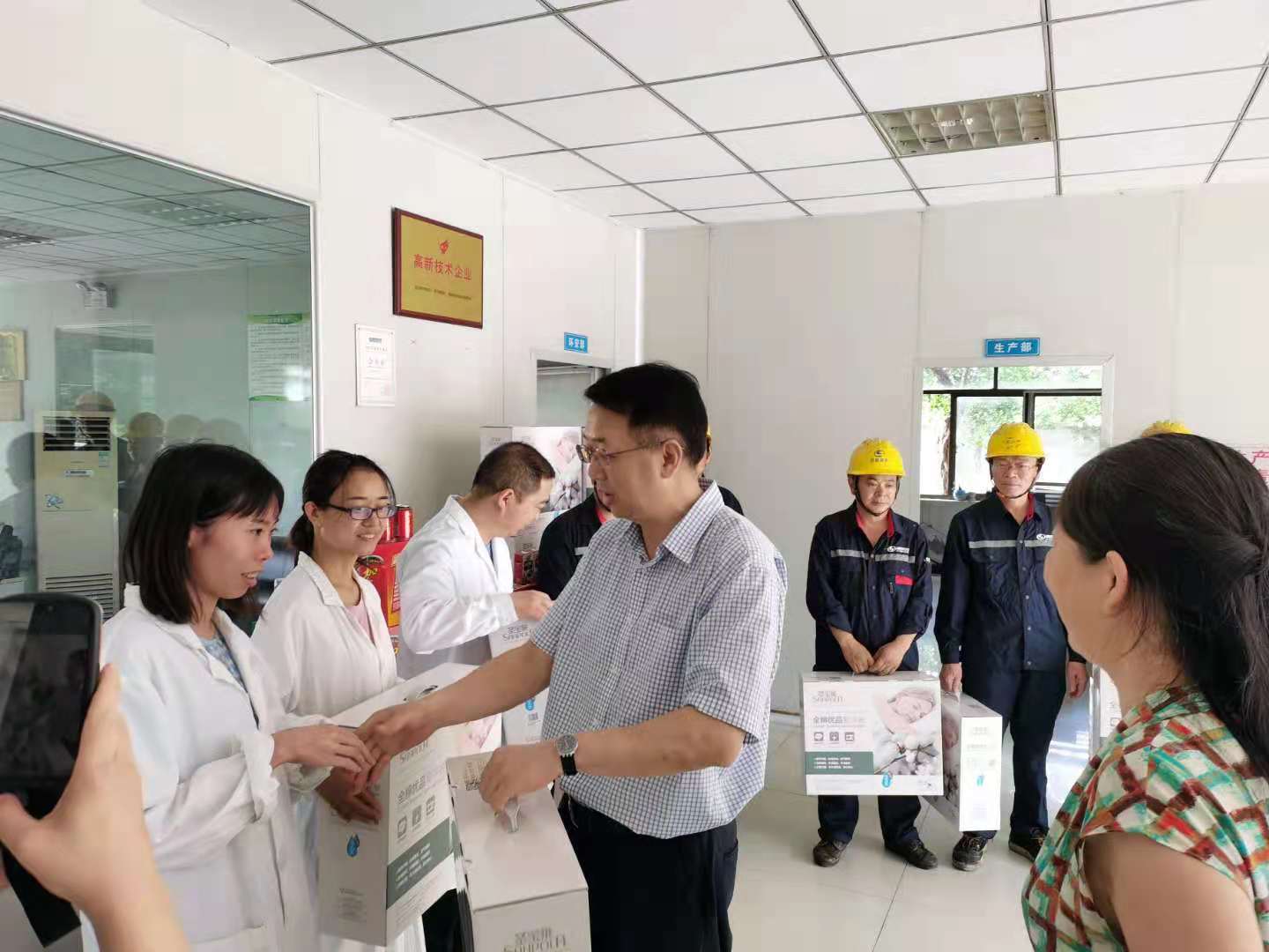 2021年7月21日,烈日炎炎,夏日酷暑。中國科學(xué)院成都分院副院長、工會(huì)主席陳鋒,工會(huì)副主席田敏,率隊(duì)深入麗凱公司大邑基地慰問一線在崗員工。陳副院長檢查了我公司生產(chǎn)現(xiàn)場,詢問了一線員工的工作生活情況,代表分院發(fā)放了清涼防暑慰問品。陳副院長叮囑分管領(lǐng)導(dǎo)注意防暑降溫工作,保護(hù)職工身心健康。勉勵(lì)大家一定要樹立安全生產(chǎn)意識(shí),嚴(yán)格排查安全隱患,為全面完成各項(xiàng)科技成果轉(zhuǎn)化任務(wù)做出更大貢獻(xiàn)。戰(zhàn)斗在一線的職工紛紛感謝各級(jí)領(lǐng)導(dǎo)的關(guān)懷,表示要鉚足干勁,戰(zhàn)勝困難,兢兢業(yè)業(yè)干好本職工作。